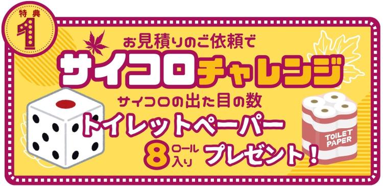 | 特典1 サイコロチャレンジ 出た目の数だけ トイレットペーパー8ロール入りを プレゼント |