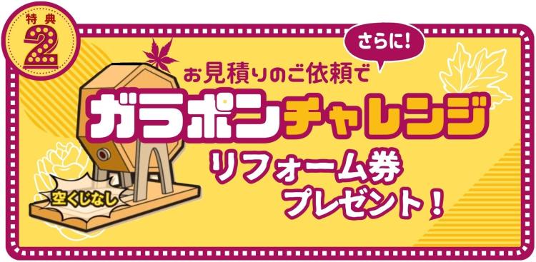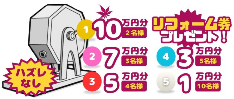 | 特典2 ガラポン抽選会 リフォーム用金券が 絶対当たる! |