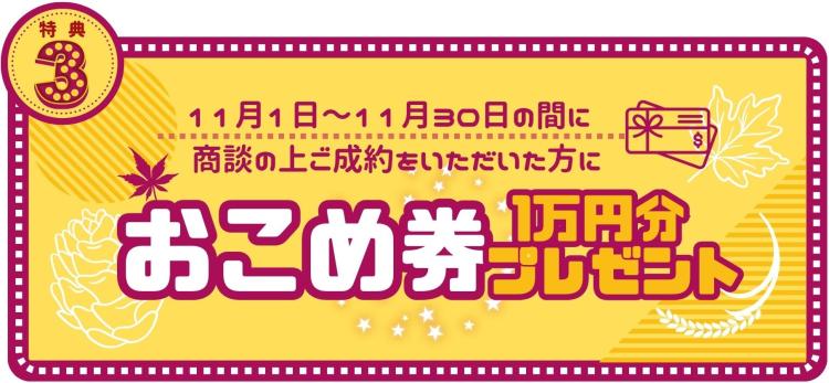 | 特典3 11/1~11/30 商談の上 ご成約特典 お米券 1万円分をプレゼント |