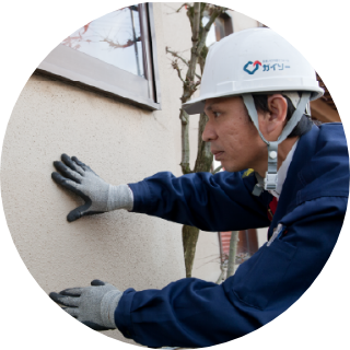 ガイソーは、手塗りのローラー工法で、3回も塗り重ねることを標準仕様としています。従来の吹き付け工法とは違い、施工実績豊富な職人が手塗りローラー工法で何度も塗料を重ね塗りすることによって、長期に渡り美しく耐久性の強い外壁を生み出します。